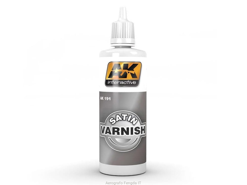 Vernice satinata acrilica formulata per le massime prestazioni dell'aerografo. Solubile in acqua, inodore e non tossico. Agitare prima di ogni utilizzo. Consigliamo il diluente acrilico AK-712 per la diluizione. Asciuga completamente in 12 ore.