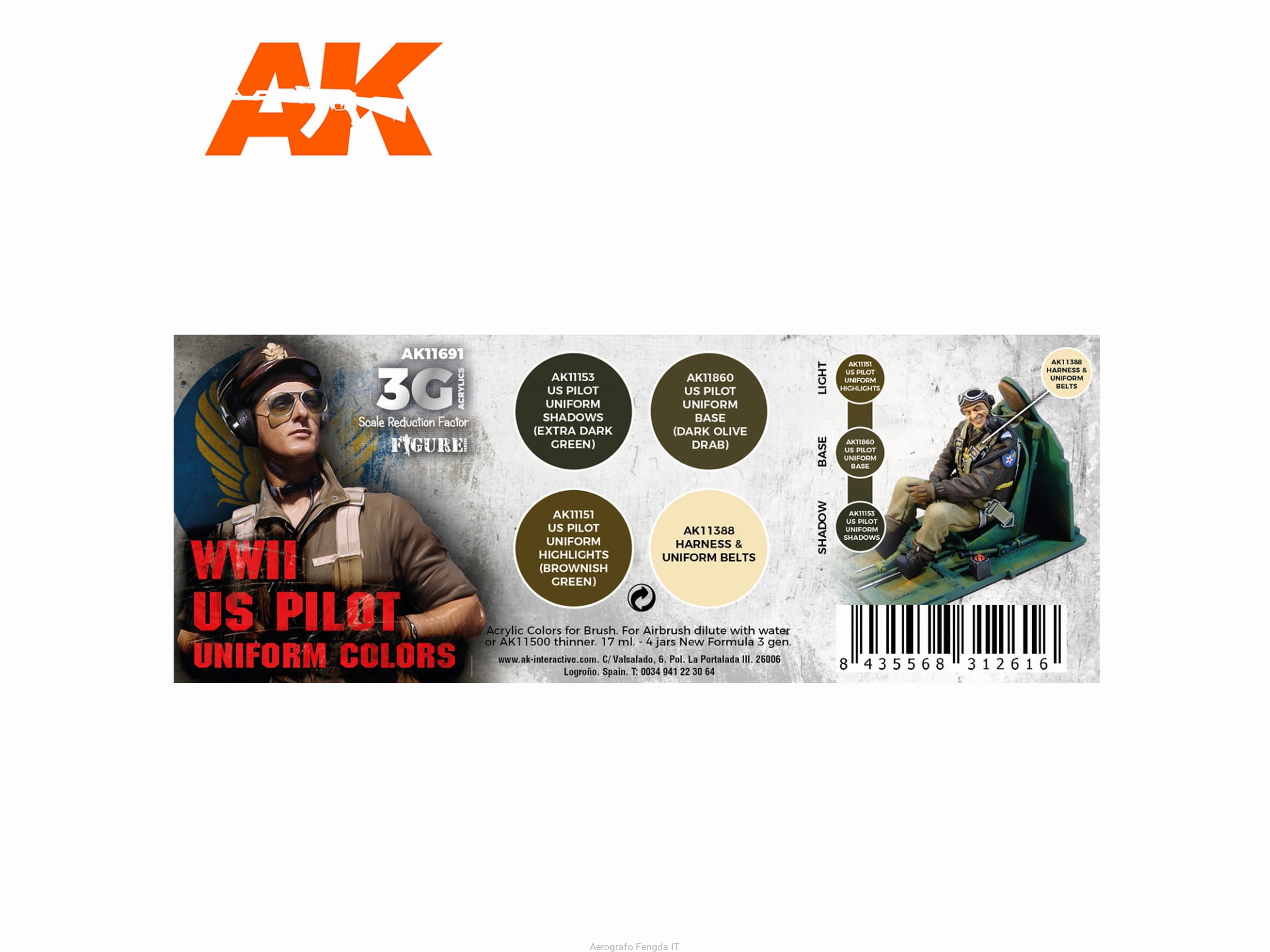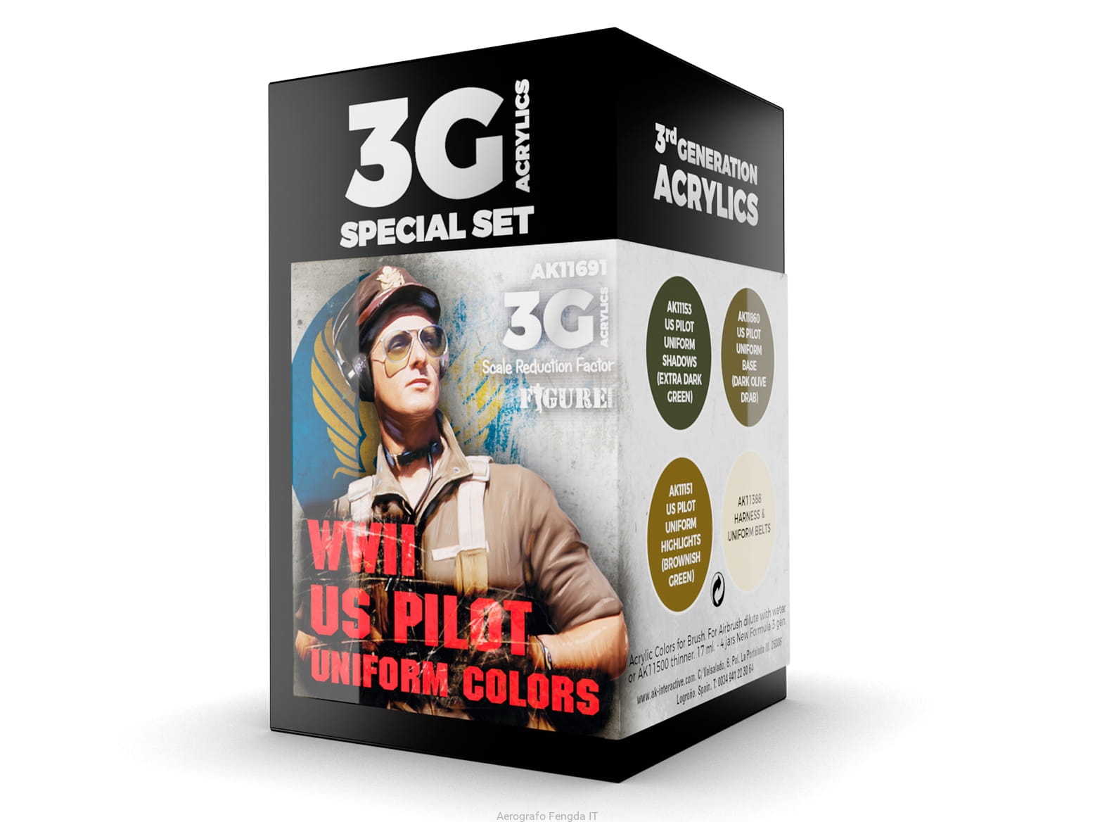 AK Acrylics 3Gen AIRCRAFT SET AK11691 WWII US UNIFORM COLORS 3G (4x17ml)