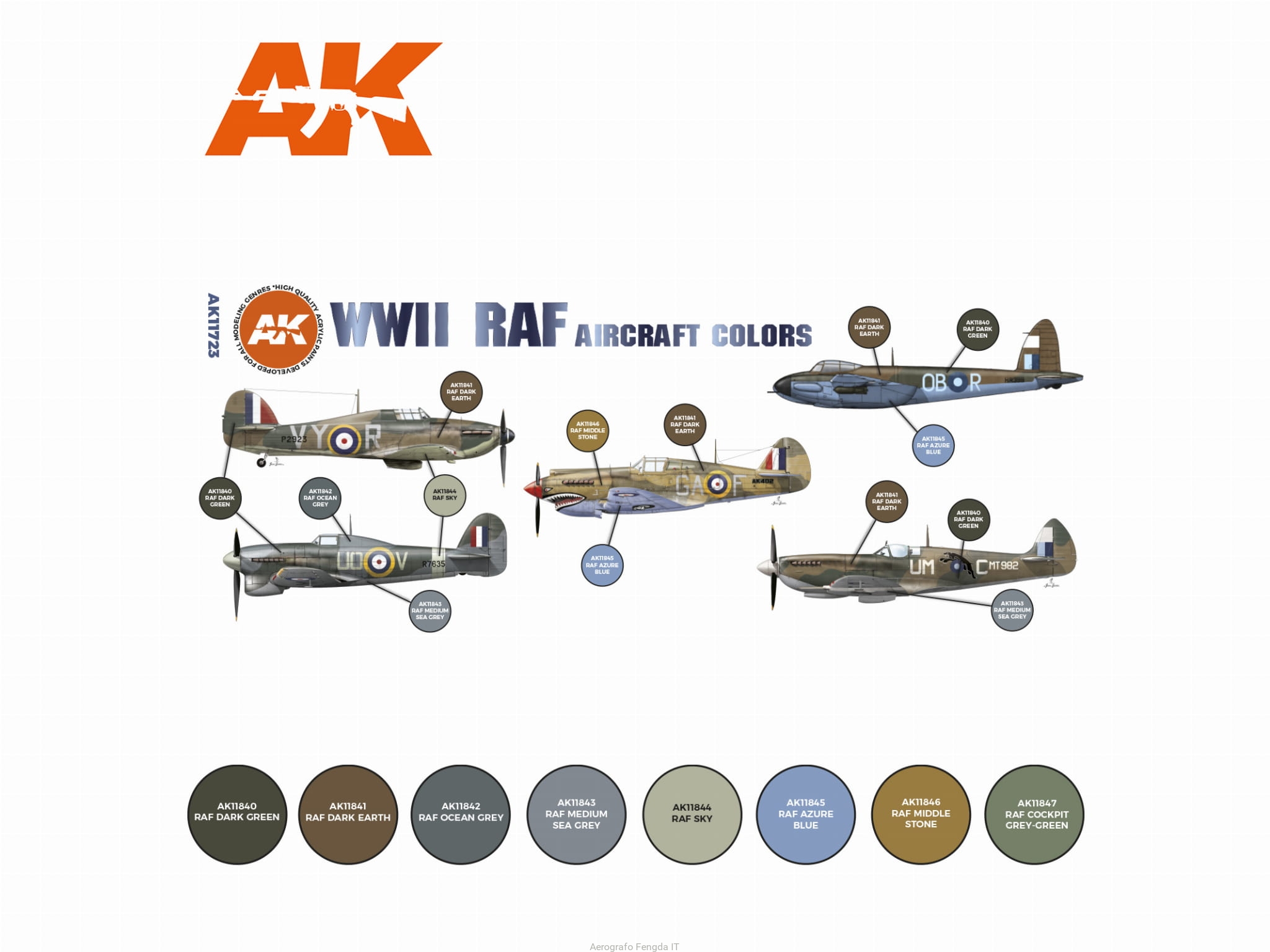 AK Acrylics 3Gen AIRCRAFT SET AK11723 WWII RAF Aircraft Colors SET 3G (8x17ml)