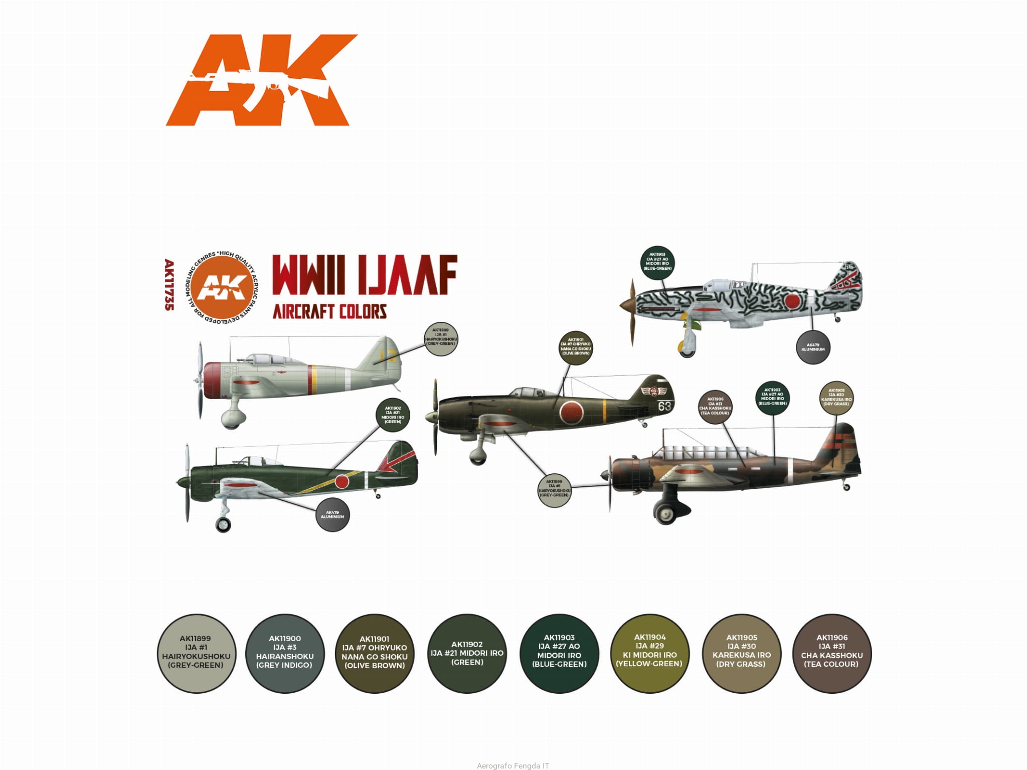 AK Acrylics 3Gen AIRCRAFT SET AK11735 WWII IJAAF Aircraft Colors SET 3G (8x17ml)