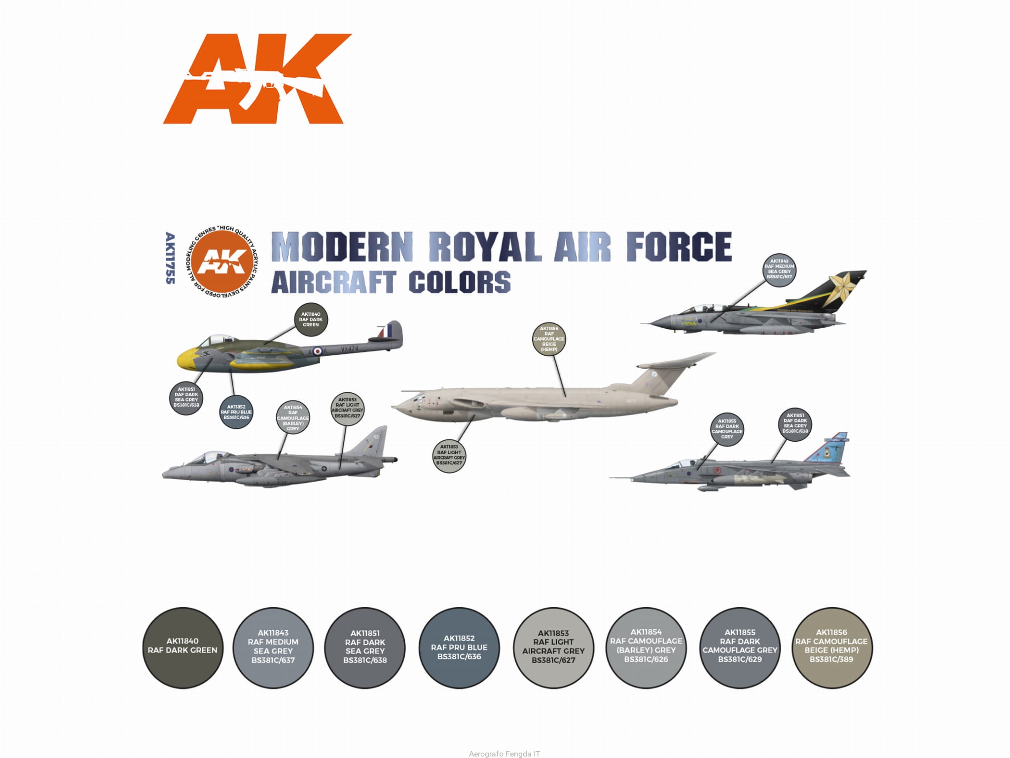 AK Acrylics 3Gen AIRCRAFT SET AK11755 Modern Royal Air Force Aircraft Colors SET 3G (8x17ml)