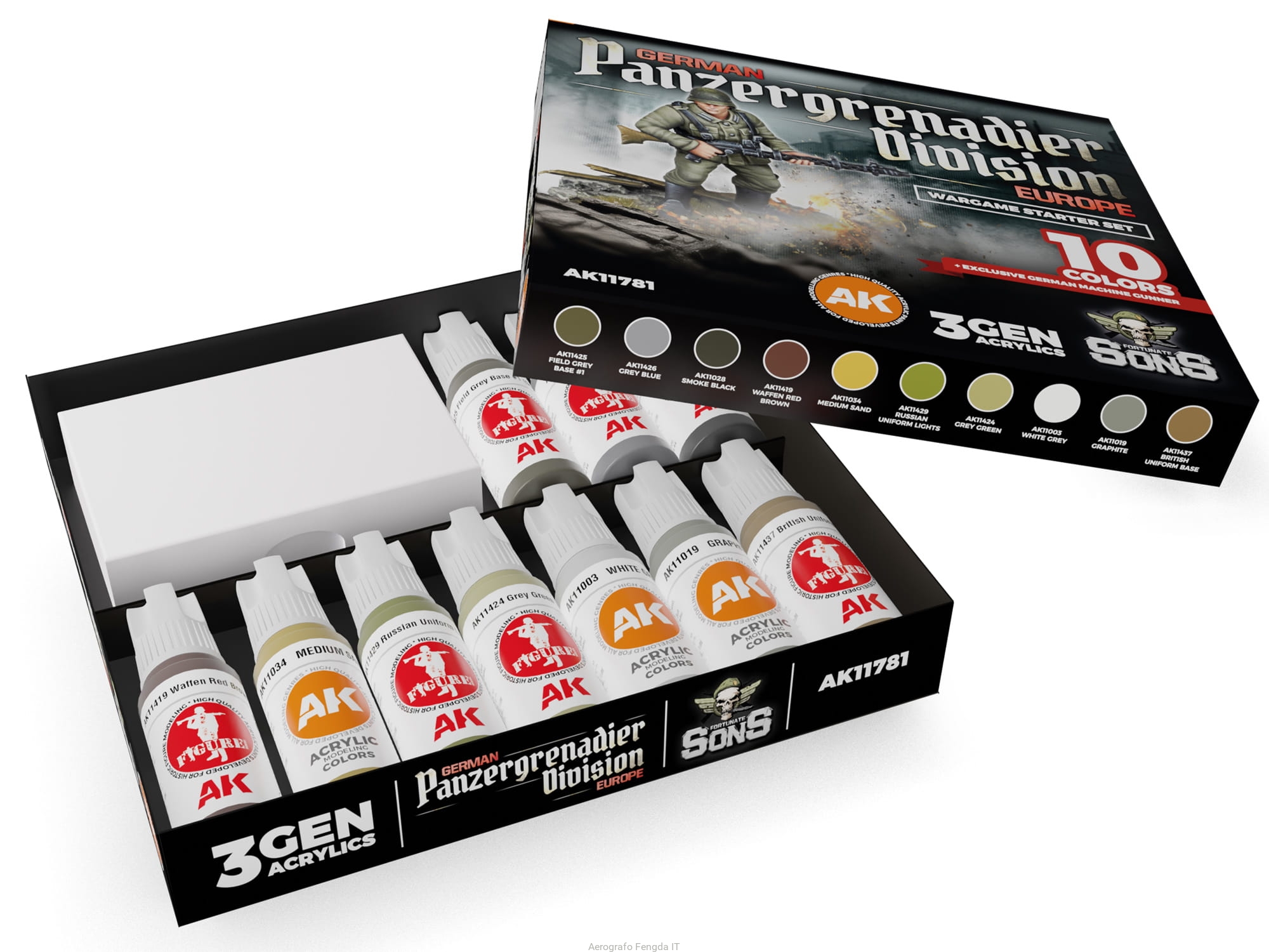 AK Acrylics 3Gen AK11781 German Panzerhrenadier Division Europe - Wargame Set (10x17ml) + Figure