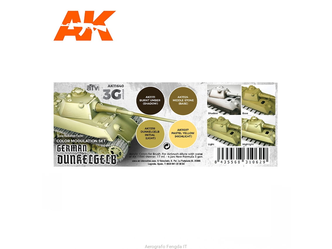 AK Acrylics 3Gen AVF SET AK11640 MODULATION GERMAN DUNKELGELB 3G (4x17ml)