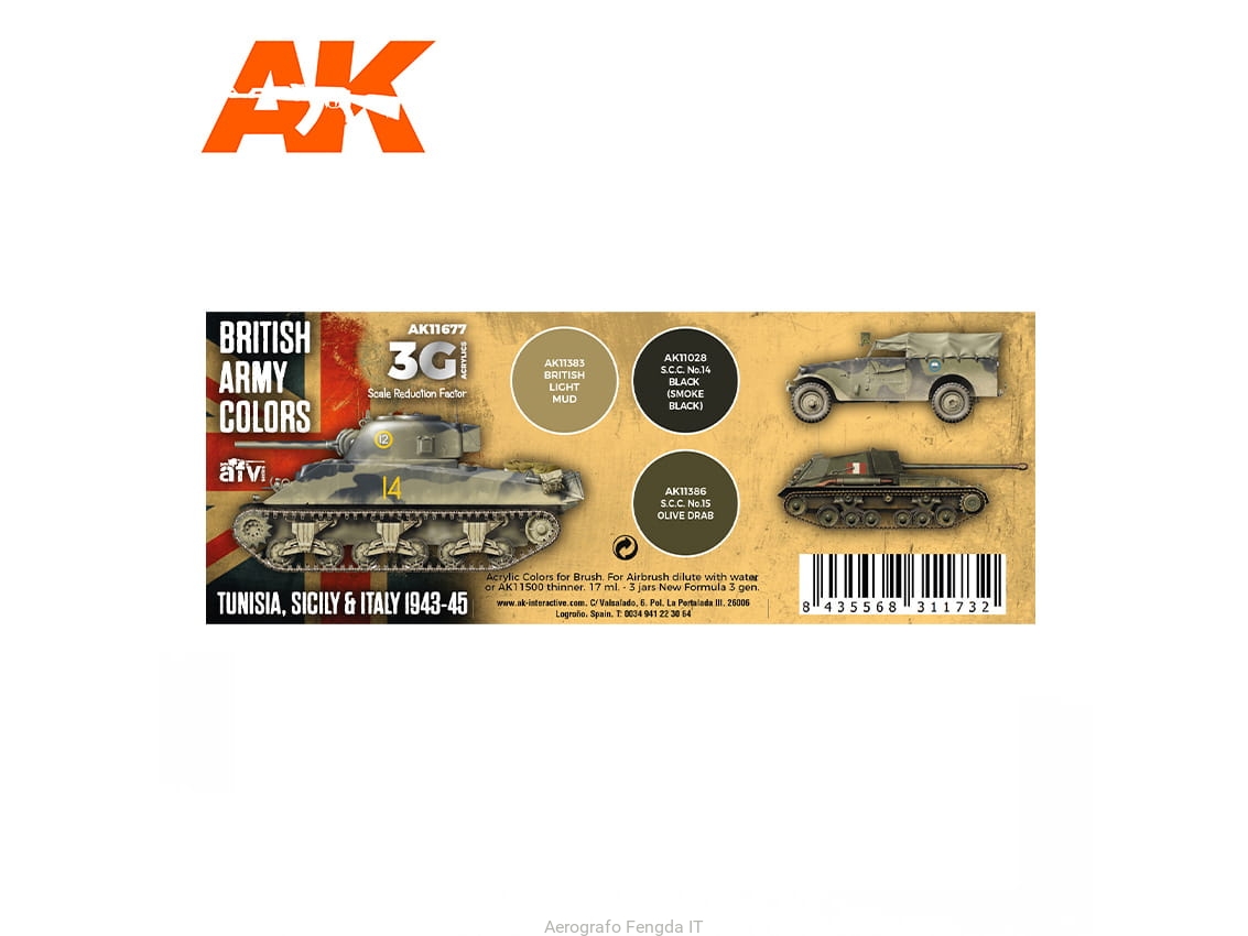 AK Acrylics 3Gen AVF SET AK11677 BRITISH ARMY COLORS TUNISIA, SICILY & ITALY 1943-45 (3x17ml)