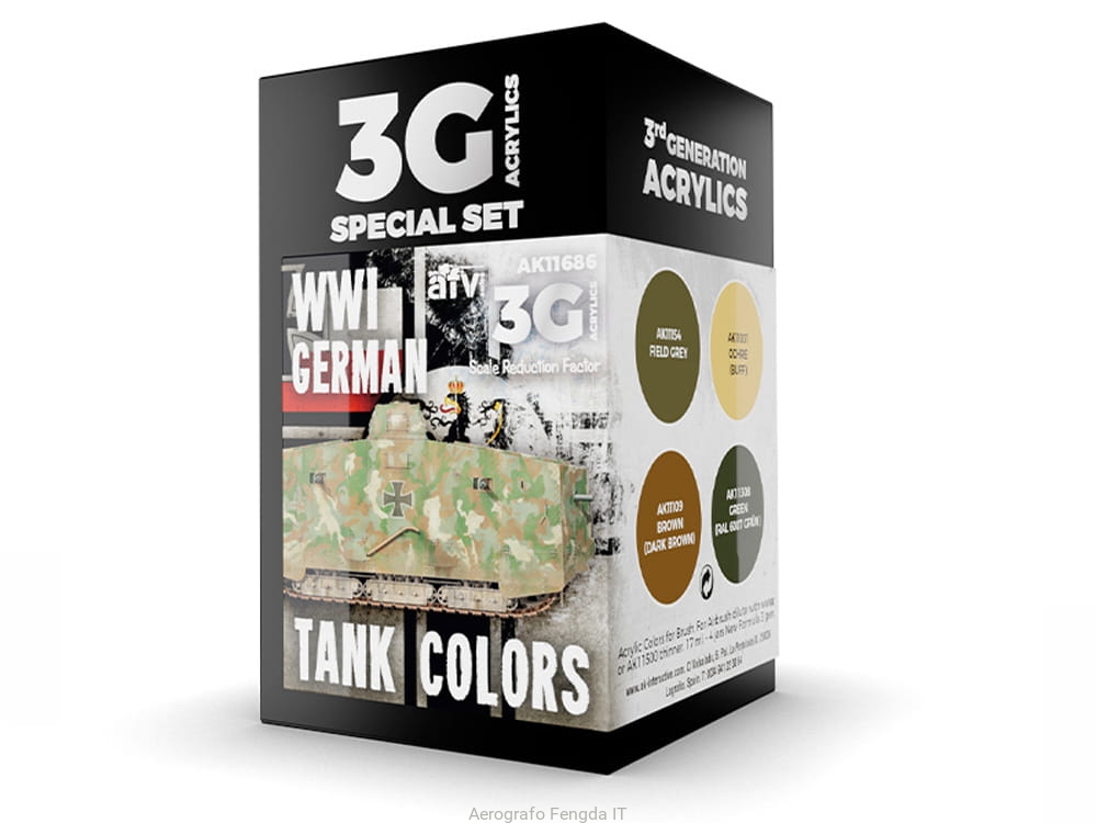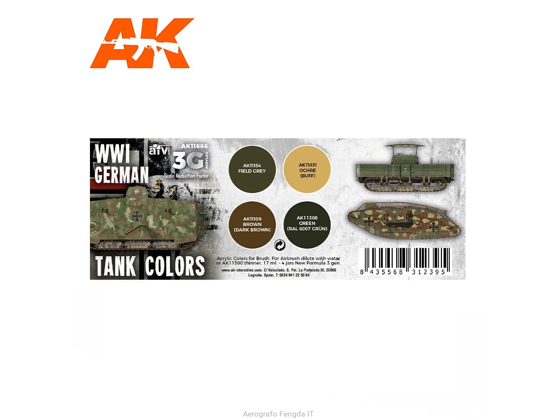 AK Acrylics 3Gen AVF SET AK11686 WWI GERMAN TANK COLORS (4x17ml)