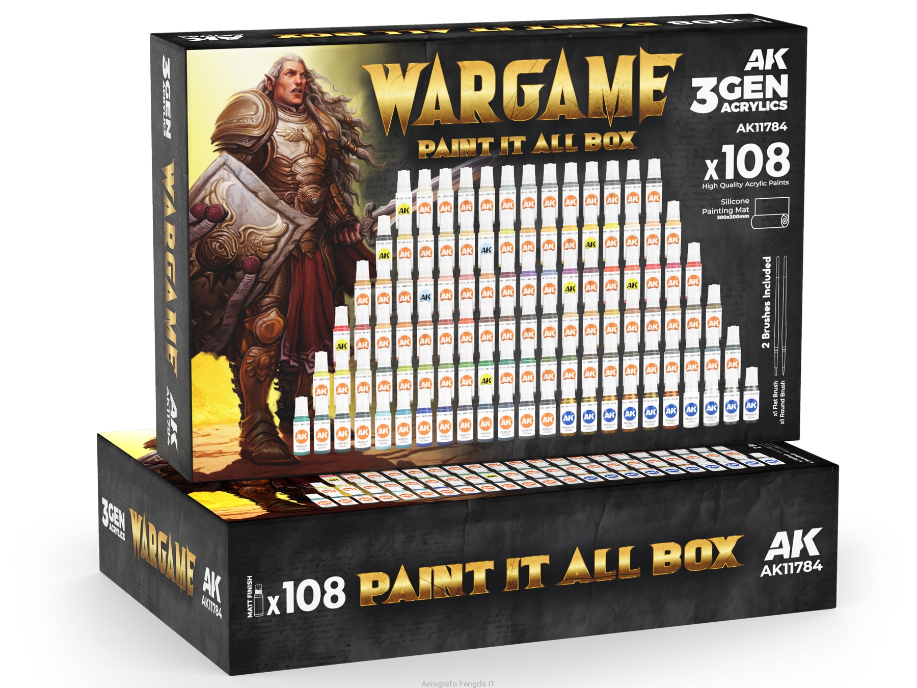 AK Acrylics 3Gen SET AK11784 WARGAME PAINT IT ALL BOX (108x17ml) + 2x brush + mat
