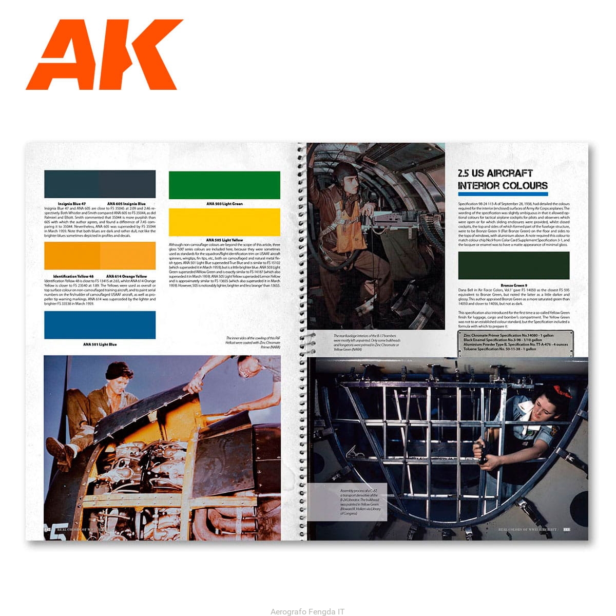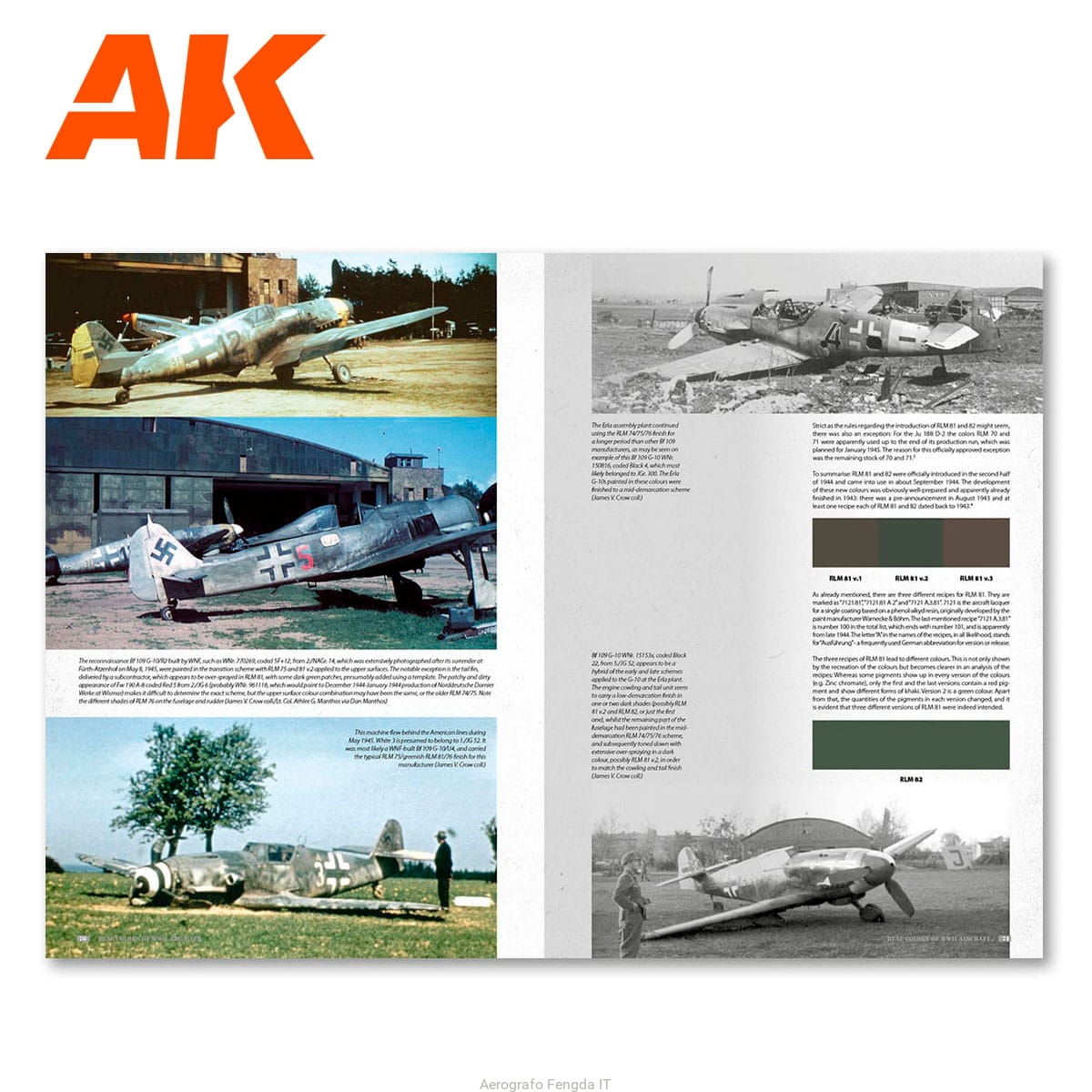 Lo studio risultante ? una guida completa ai colori e agli schemi mimetici, presentata su 292 pagine e illustrata con 42 profili colore, diverse ristampe di documenti e 390 b/n e colore foto, molte delle quali molto rare. Sono incluse le ultime informazioni sui colori della fine della guerra della Luftwaffe, che sono stati riprodotti come colori in scala sulla base delle ricette originali della fabbrica di vernici di Gerald T. Högl e Jürgen Kiroff. Per la prima volta, l'impareggiabile ricerca sui colori dell'aeronautica sovietica condotta da Mikhail V. Orlov viene presentata ai lettori non russi. La ricerca d'archivio di Nicholas Millman ci offre un'accurata riproduzione e descrizione dei colori utilizzati da USAAF, US Navy e RAF/FAA.