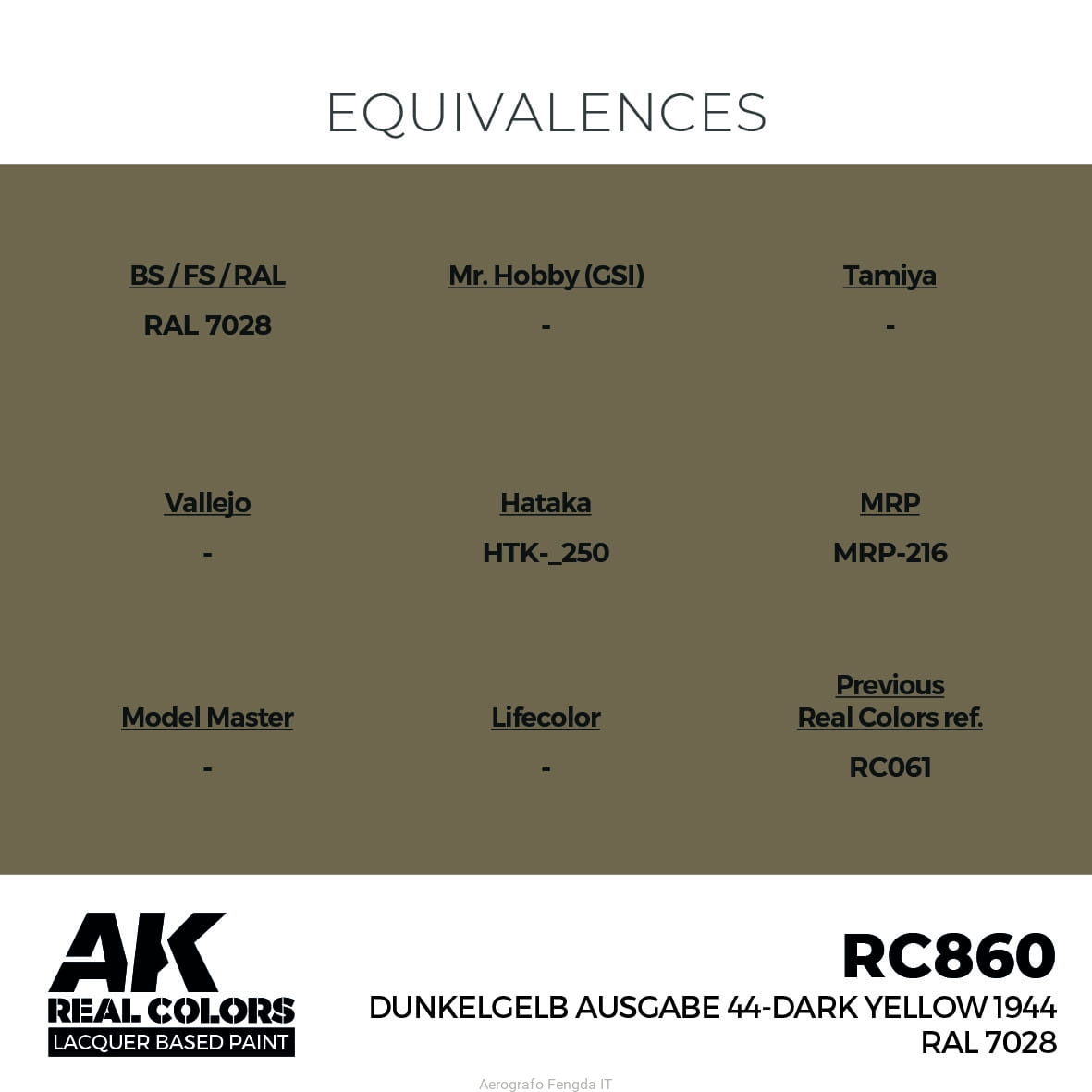 AK REAL COLORS RC860 Dunkelgelb Ausgabe 44-Dark Yellow 1944 RAL 7028 (17ml) (old RC061)