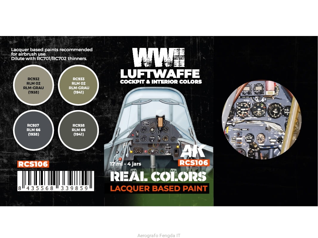 AK REAL COLORS SET RCS106 WWII Luftwaffe Cockpit & Interior Colors (4x17ml)