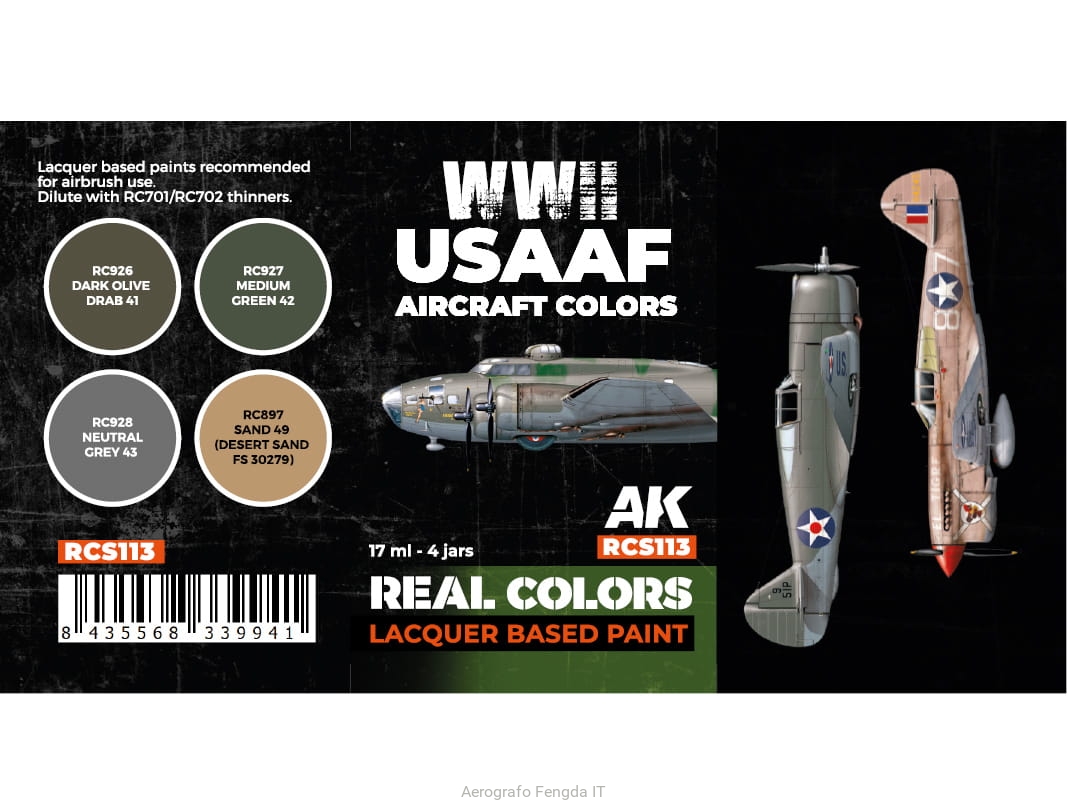 AK REAL COLORS SET RCS113 WWII USAAF Aircraft Colors (4x17ml)