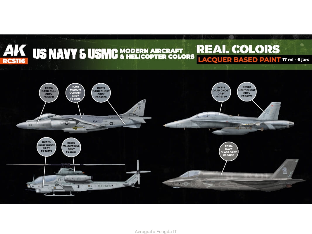 AK REAL COLORS SET RCS116 US Navy & USMC Modern Aircraft & Helicopter Colors (6x17ml)