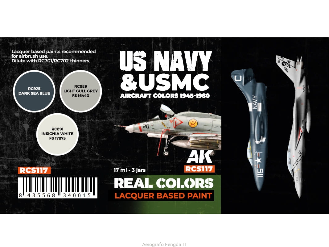 AK REAL COLORS SET RCS117 US Navy & USMC Aircraft Colors 1945-1980 (3x17ml)