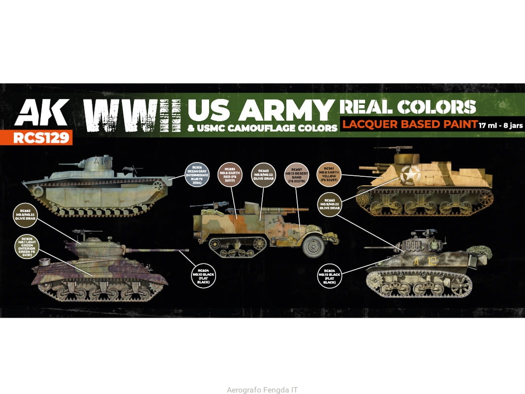 AK REAL COLORS SET RCS129 WWII US Army & USMC Camouflage Colors (8x17ml)