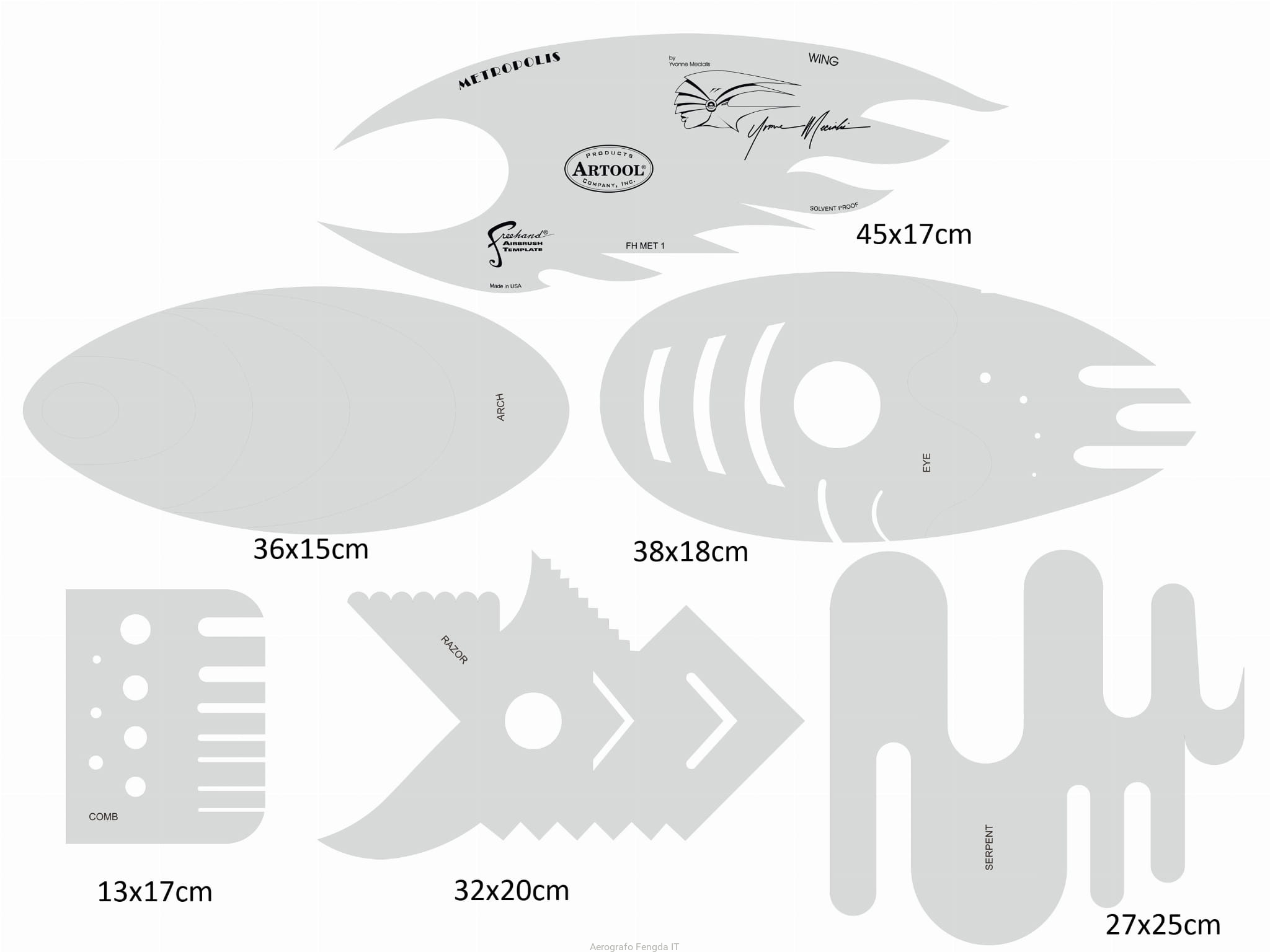ARTOOL FH MET 1 Metropolis (6 pcs.) Freehand Airbrush Templates by Yvonne Mecialis