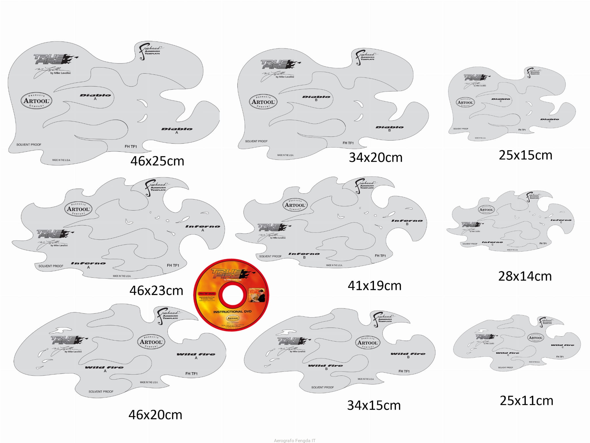 ARTOOL FH TF 1 True Fire (18 pcs. + DVD) Freehand Airbrush Templates by Mike Lavallee