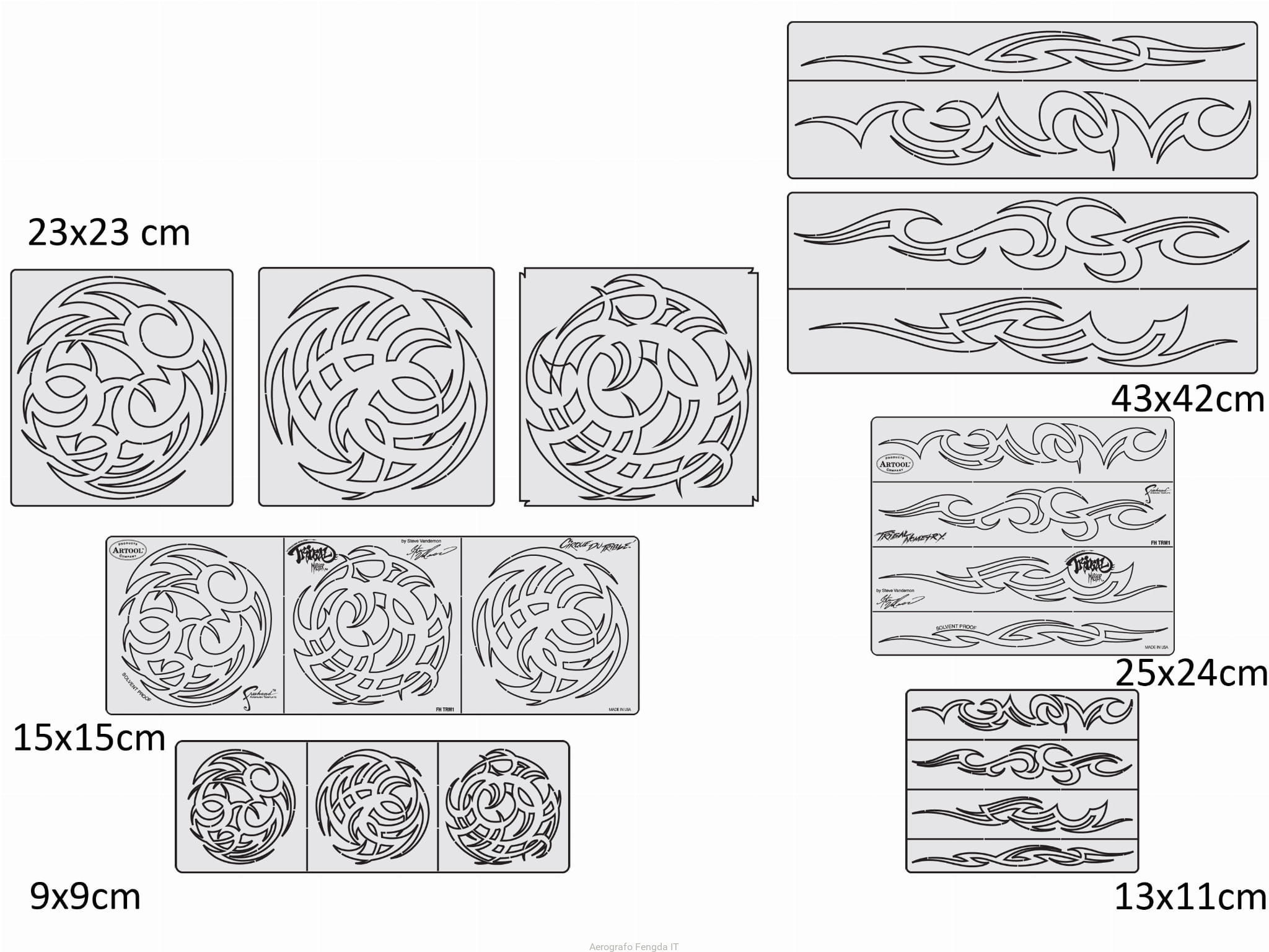 ARTOOL FH TRM 1 Tribal Master (21 pcs.) Freehand Airbrush Template Set by Steve Vandemon