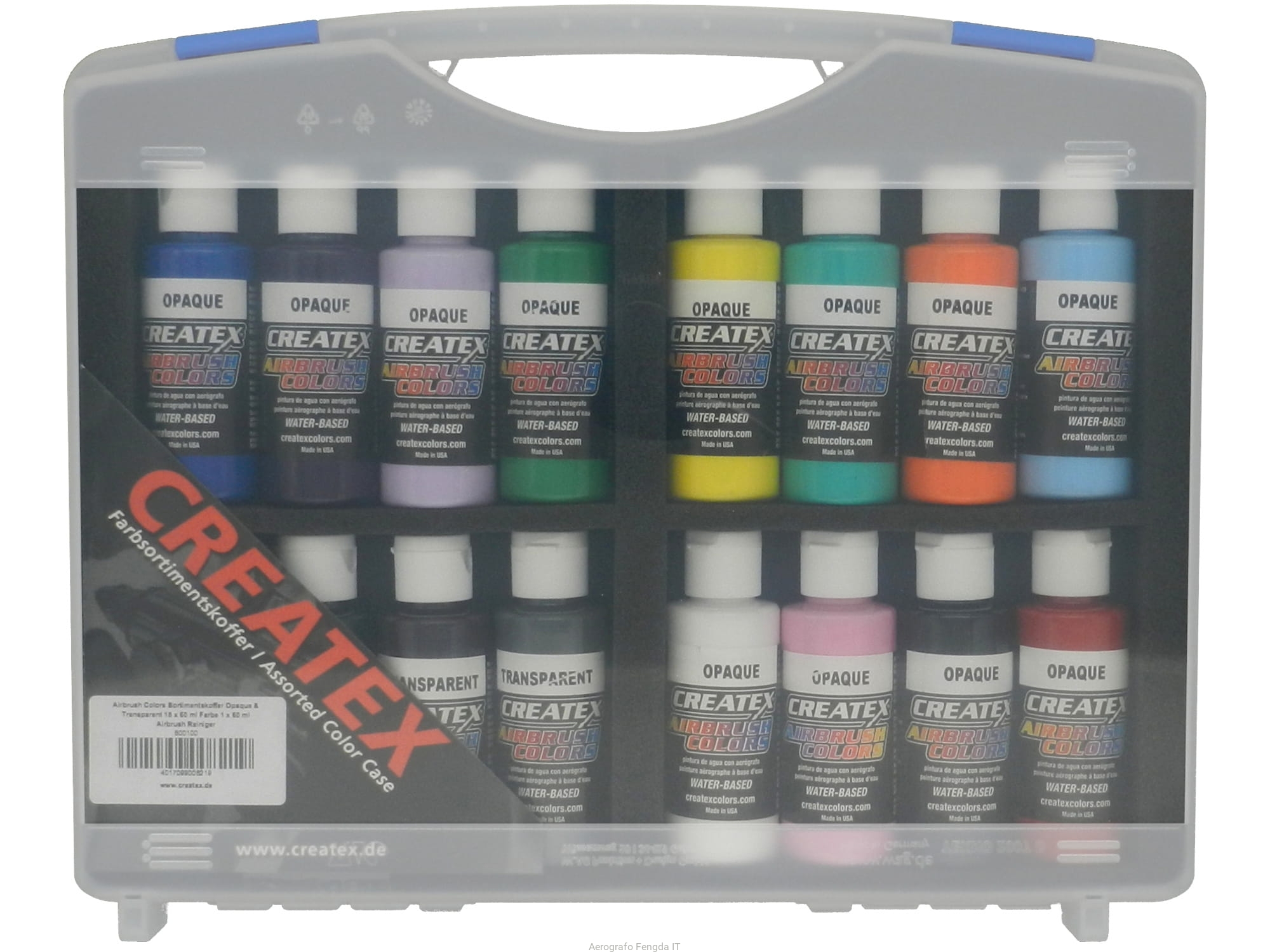 Createx Colors Case Opaque & Transparent (15x60ml Paint, 1x60ml Airbrush Cleaner)