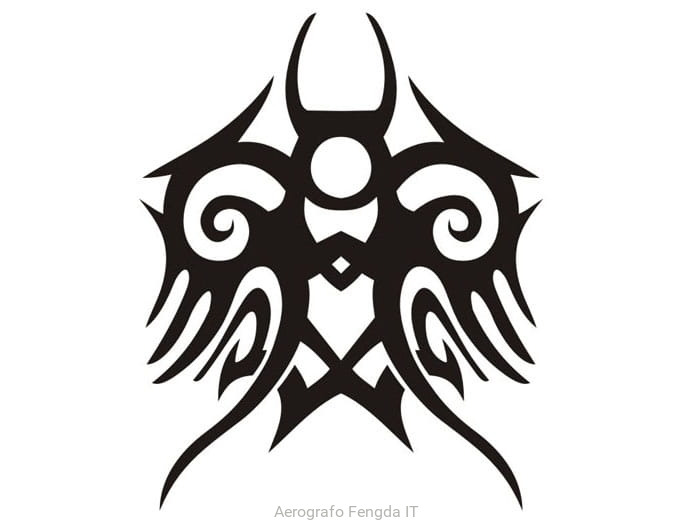 Il modello di tatuaggio aerografo raffigurato è messo in un rettangolo con una lunghezza di 6,5 x 8,5 cm di lato piu lungo. Il disegno di tatuaggio è adesivo e non può essere utilizzato più di una volta!