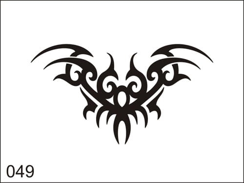 Il modello di tatuaggio aerografo raffigurato è messo in un rettangolo con una lunghezza di 6,5 x 8,5 cm di lato piu lungo. Il disegno di tatuaggio è adesivo e non può essere utilizzato più di una volta!