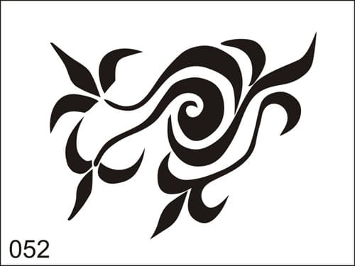 Il modello di tatuaggio aerografo raffigurato è messo in un rettangolo con una lunghezza di 6,5 x 8,5 cm di lato piu lungo. Il disegno di tatuaggio è adesivo e non può essere utilizzato più di una volta!