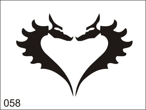 Il modello di tatuaggio aerografo raffigurato è messo in un rettangolo con una lunghezza di 6,5 x 8,5 cm di lato piu lungo. Il disegno di tatuaggio è adesivo e non può essere utilizzato più di una volta!