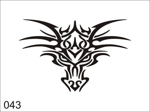 Il modello di tatuaggio aerografo raffigurato è messo in un rettangolo con una lunghezza di 11,5 x 15,5 cm di lato piu lungo. Il disegno di tatuaggio è adesivo e non può essere utilizzato più di una volta!