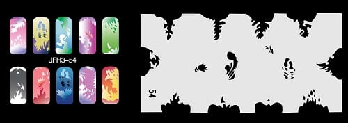 Disegno (modello) per le unghie Fengda (nail stencil) è un ottimo aiuto per l'arte aerografo unghie, o nail design. Il modello è lavabile e riutilizzabile. Il modello è a forma di cerchio e contiene un gran numero di diversi disegni, che possono essere combinati per creare un aspetto unico di unghie.