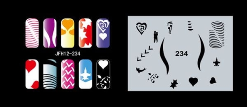 Disegno (modello) per le unghie Fengda (nail stencil) è un ottimo aiuto per l'arte aerografo unghie, o nail design. Il modello è lavabile e riutilizzabile. Il modello è a forma di cerchio e contiene un gran numero di diversi disegni, che possono essere combinati per creare un aspetto unico di unghie.