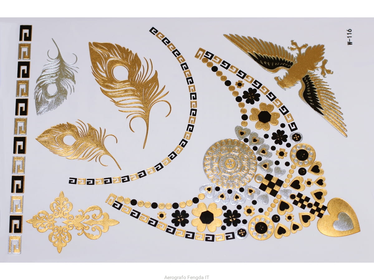 Gold Silver Black | Jewelry Flash Tattoo stickers W-116, 21x15cm