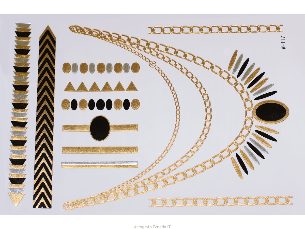 Gold Silver Black | Jewelry Flash Tattoo stickers W-117, 21x15cm