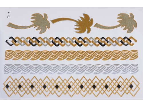 Złote a srebrne tymczasowe wodoodporne tatuażowe naklejki inspirowane biżuteria (bransoletkami, naszyjnikami, pierścionkami, indyjskie, afrykańskie, egipskie, motywy geometryczne i inne), tatuaż wytrzyma 3-5 dni, dla aplikacji i usunięcia przygotowaliśmy dla Was poradnik: