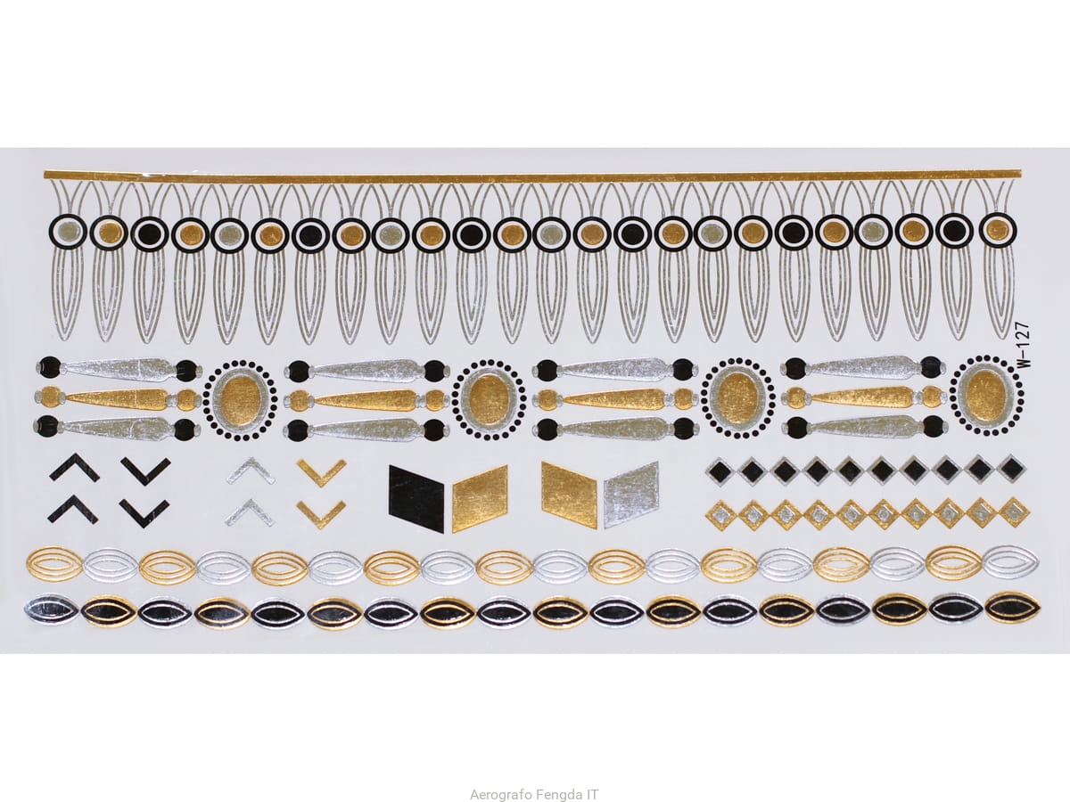 Gold Silver Black | Jewelry Flash Tattoo stickers W-127, 21x11cm