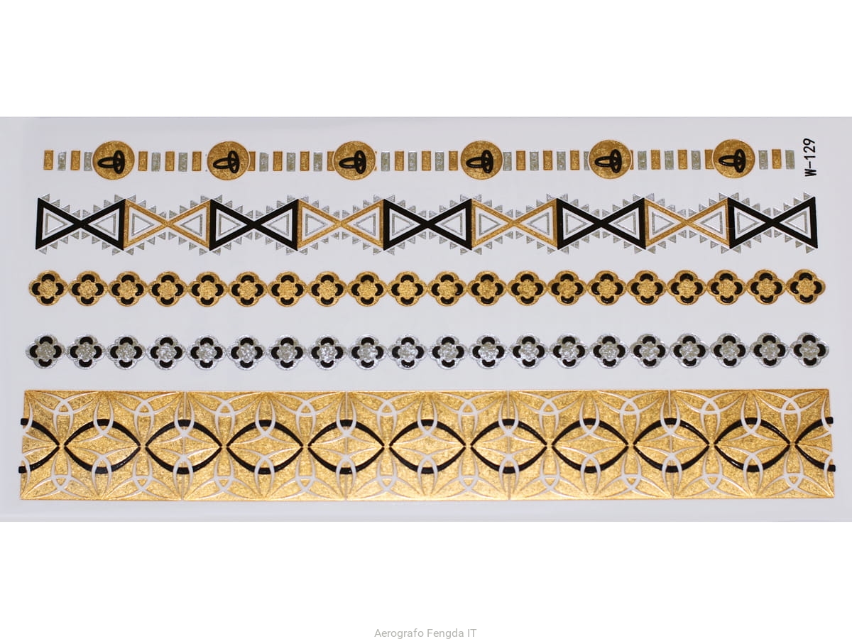 Gold Silver Black | Jewelry Flash Tattoo stickers W-129, 21x11cm