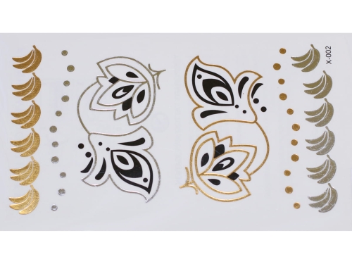 Złote a srebrne tymczasowe wodoodporne tatuażowe naklejki inspirowane biżuteria (bransoletkami, naszyjnikami, pierścionkami, indyjskie, afrykańskie, egipskie, motywy geometryczne i inne), tatuaż wytrzyma 3-5 dni, dla aplikacji i usunięcia przygotowaliśmy dla Was poradnik: