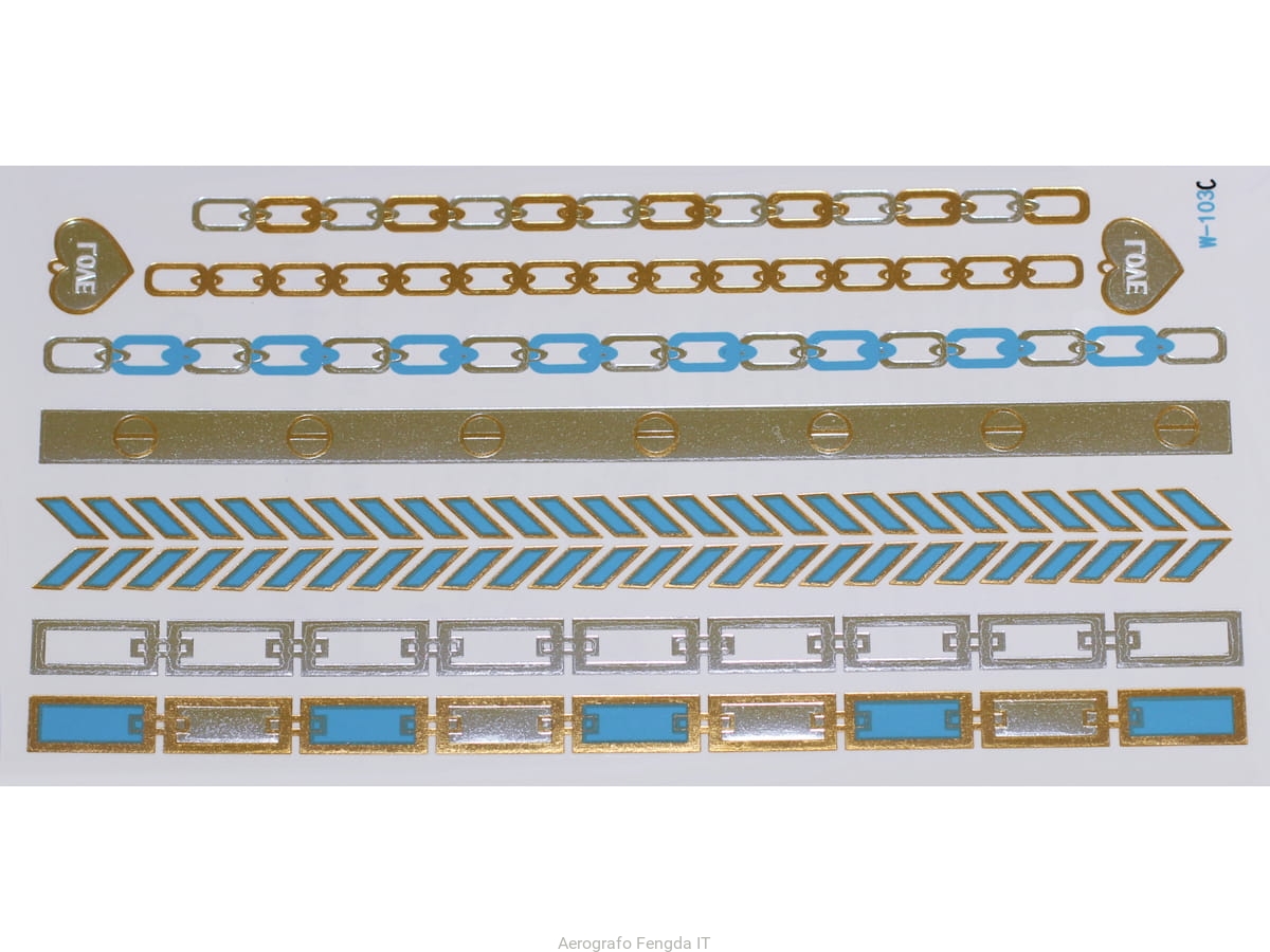 Gold Silver Blue | Jewelry Flash Tattoo stickers W-103C, 21x11cm