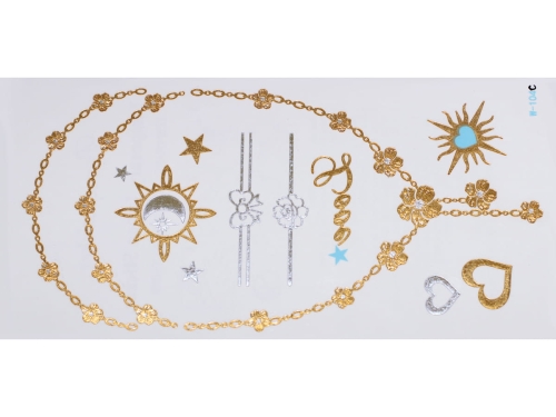 Gold Silver Blue | Jewelry Flash Tattoo stickers W-104C, 21x11cm