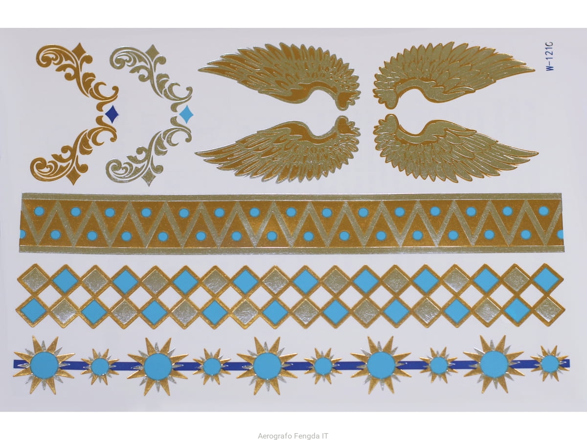Gold Silver Blue | Jewelry Flash Tattoo stickers W-121C, 21x15cm