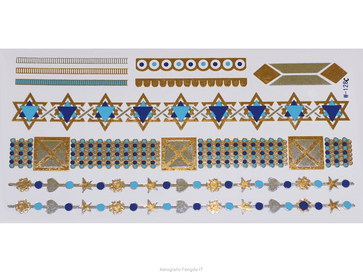 Gold Silver Blue | Jewelry Flash Tattoo stickers W-128C, 21x11cm