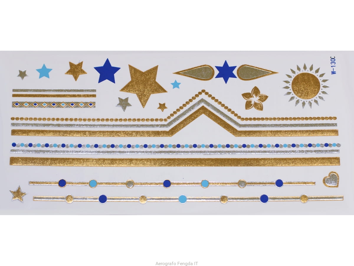 Gold Silver Blue | Jewelry Flash Tattoo stickers W-130C, 21x11cm