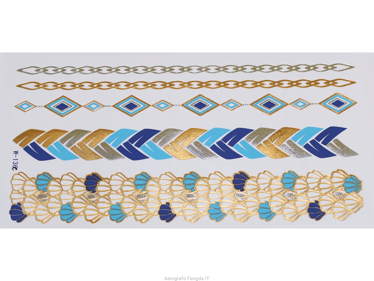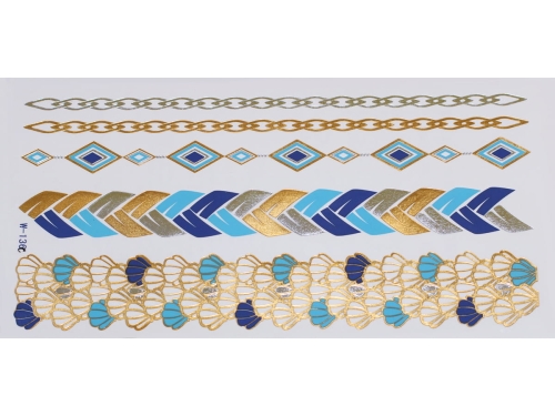 Gold Silver Blue | Jewelry Flash Tattoo stickers W-136C, 21x11cm