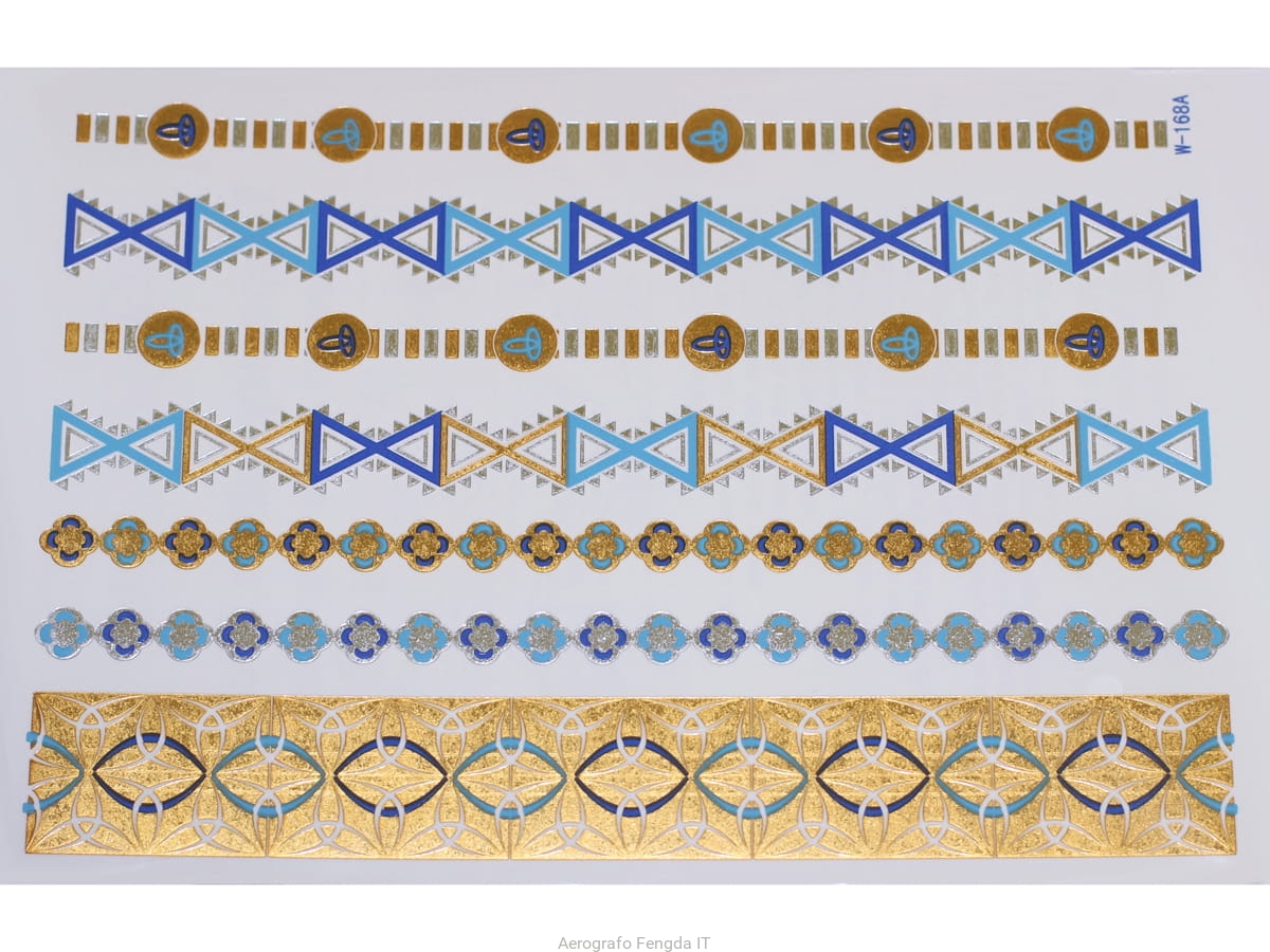 Gold Silver Blue | Jewelry Flash Tattoo stickers W-168C, 21x15cm