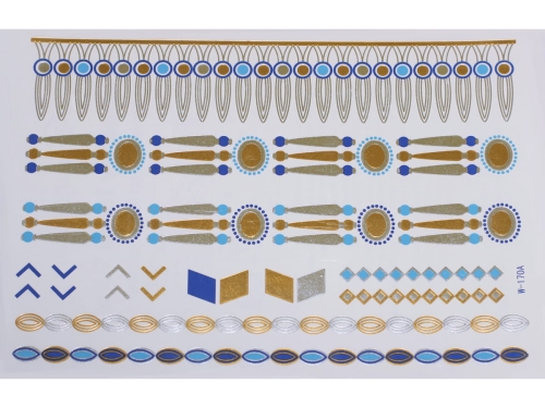 Gold Silver Blue | Jewelry Flash Tattoo stickers W-170C, 21x15cm