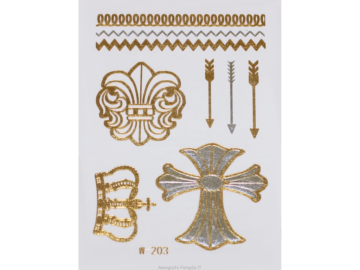 Gold Silver | Jewelry Flash Tattoo stickers W-203, 8x10cm