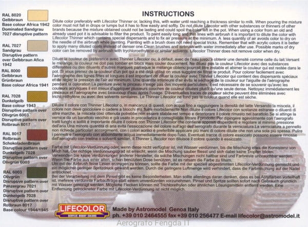 Kit di colori acrilici italiane hobby LIFECOLOR contiene 6 diversi
