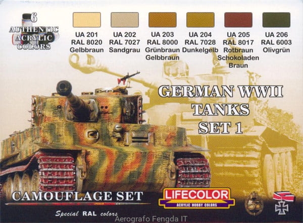 Kit aerografo di colori camouflage LifeColor CS01 GERMAN WWII TANKS SET1