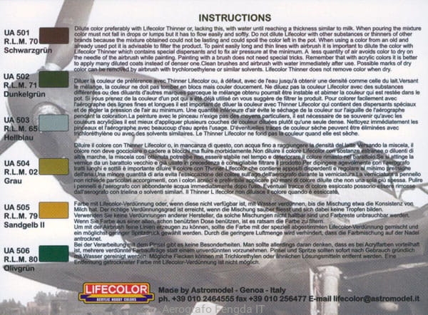 Kit di colori acrilici italiane hobby LIFECOLOR contiene 6 diversi