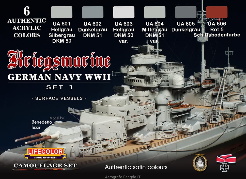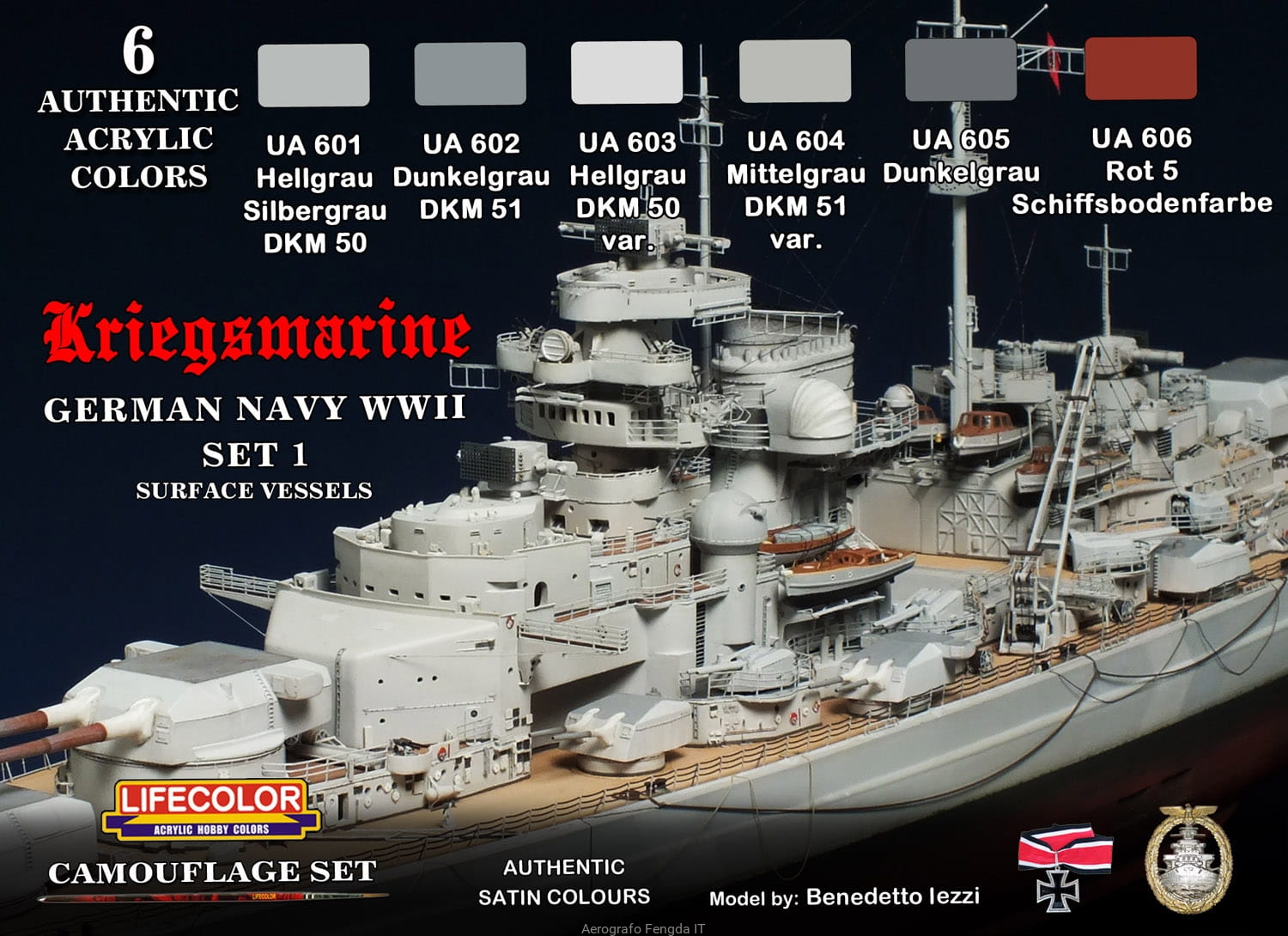 Kit aerografo di colori camouflage LifeColor CS09 GERMAN NAVY WWII SET1 Kriegsmarine