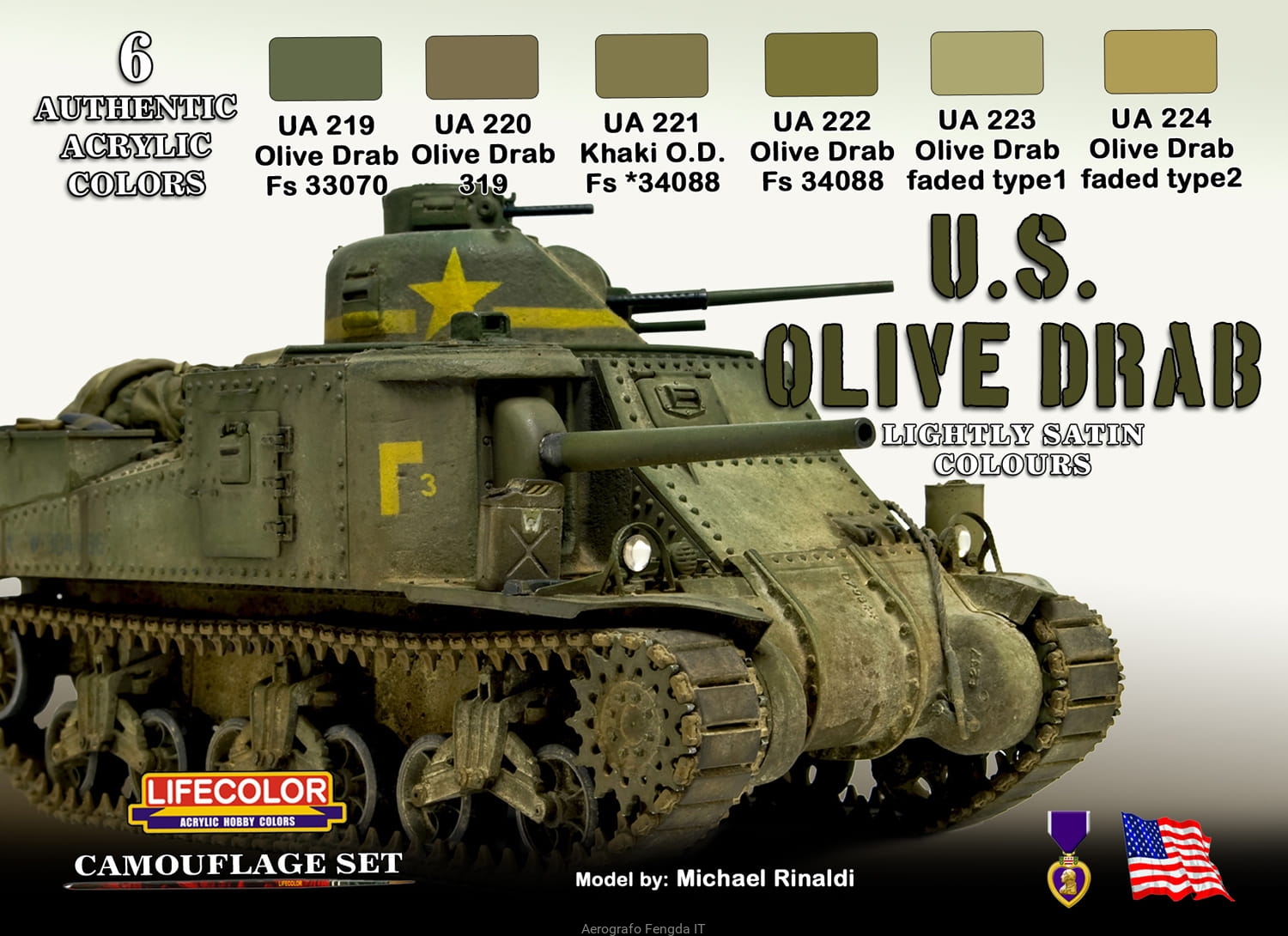 Kit aerografo di colori camouflage LifeColor CS11 U.S. OLIVE DRAB