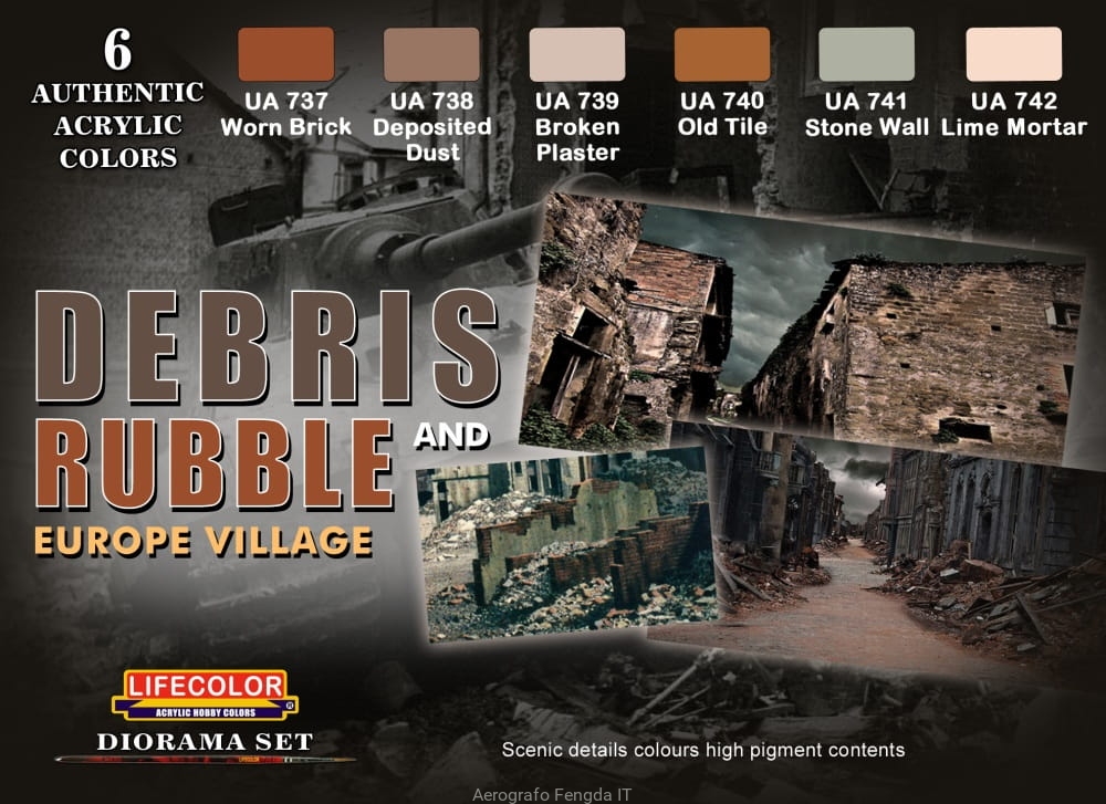 Kit aerografo di colori camouflage LifeColor CS31 DEBRIS and RUBBLE