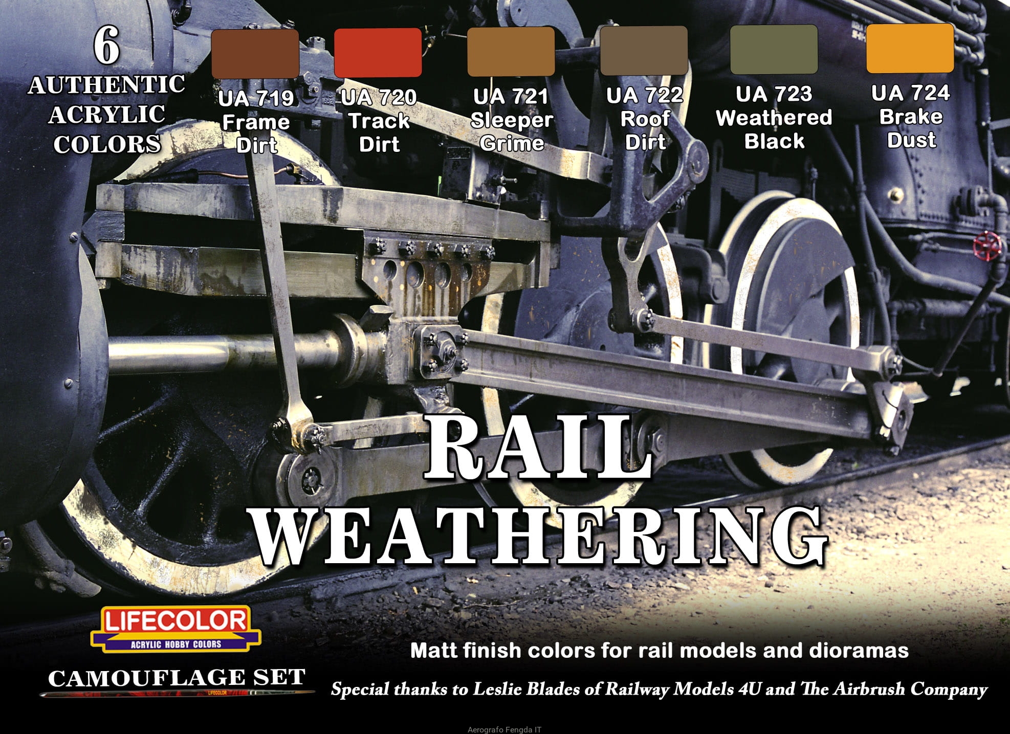 Kit aerografo di colori diorama LifeColor CS21 RAIL WEATHERING
